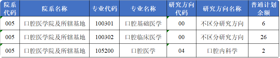 口腔医学院2026年硕士研究生招生第一批调剂计划余额信息