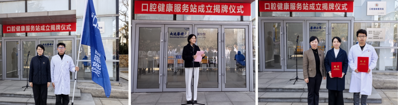 仪式上,杨晓丽为“口腔健康服务站”揭牌,她在讲话中对服务站的成立表示祝贺,向为筹建工作付出辛勤汗水的师生表示感谢。她强调,服务站的设立是学校落实“健康第一”教育理念、推进“健康校园”建设、关爱师生身心健康的暖心之举和务实之策。她指出,在口腔医学专业建设迎来新起点的背景下,服务站的成立是学院优良传统的具体体现,让专业走出课堂,让师生在服务实践中锤炼“医者仁心”,做到学以致用、服务师生、回馈校园。她希望口腔医学院以此为契机,将服务站打造成三个“窗口”:一是服务师生的窗口,让师生在校内即可享受便捷专业的口腔健康服务;二是健康教育的窗口,通过科普宣传提升师生口腔健康素养;三是实践育人的窗口,让同学们在服务中巩固专业知识,提升沟通能力,培育奉献精神。